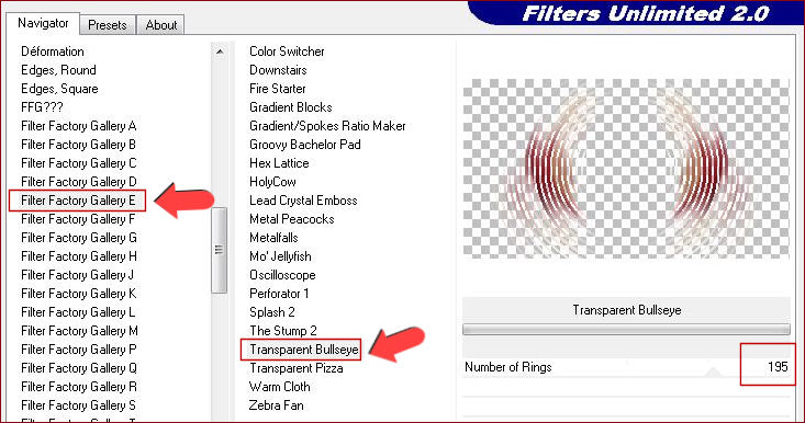 Effets, Filter Factory Gallery E, Transparent Bullseye