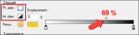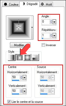 ---------------------------------------- 1- Fichier, Nouveau, Nouvelle image de 900 x 600 pixels,Transparent 2- Outil, Pot de peinture, remplir le calque de #000000 3- Calques, Nouveau calque Raster 2 4- Preparez votre dégradé carré, Avant-plan #ffffff, Arrière-plan #000000