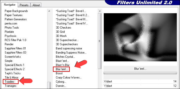 11- Palettes des calques sur Lumière dure et Opacité à 60 % 12- Effets, Toadies, Blur 'em