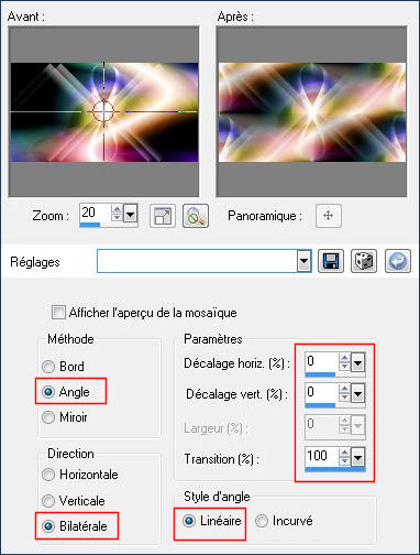 18- Calques, Fusionner tous 19- Fenêtre, Dupliquer, (Maj + D) 20- Effets, Effets d'image, Mosaïque sans jointures