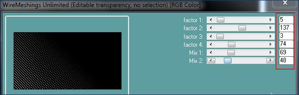 Nota : Pour ce tuto, je vous conseille d'utiliser les nombreuses possibilités de couleurs des filtres DSB Flux , Isotope et Nick Software pour réajuster les tons par rapport à vos tubes personnels ! 1- Fichier, Nouveau, Nouvelle image de 850 x 450 pixels,Transparent 2- Outil, Pot de peinture, Remplir avec la couleur #000000 3- Effets, DSB Flux, Isotope