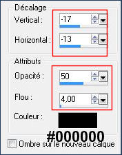 34- Effets, Transparency, Eliminate Black 35- Palette des calques sur Ecran 36- Calques, Agencer, Déplacer vers le bas, 2 fois 37- Se replacer en haut de la pile 38- Effets, Effets d'image, Décalage