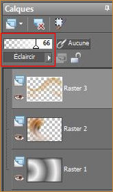 10- Palette des calques sur Recouvrement et Opacité à 73 % 11- Calque, Nouveau Calque Raster 3