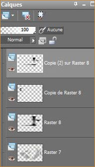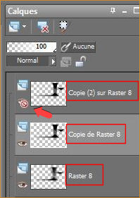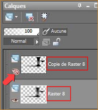 36- Se replacer sur la Copie de Raster 8 et cliquer sur l'oeil pour l'ouvrir 37- Fermer l'oeil de Copie (2) sur Raster 8 et se placer sur Copie de Raster 8