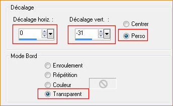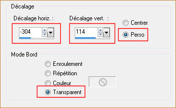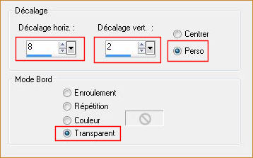 41- Image, Redimensionner à 80 % ( Redimensionner tous les calques non coché !) 42- Effets, Effets d'image, Décalage