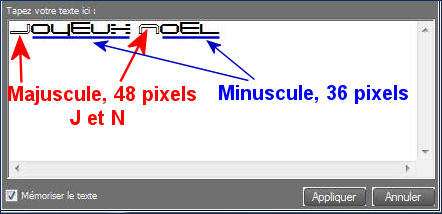 39- Vous allez écrire : Joyeux Noel J en majuscule, 48 pixels, oyeux en minuscules, 36 pixels
