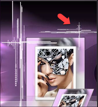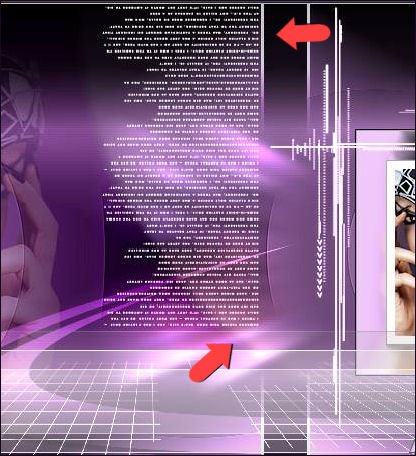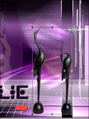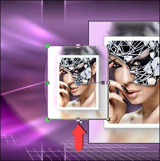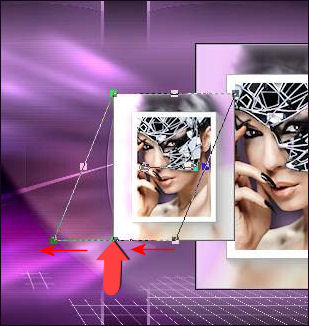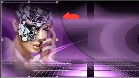 35- Palette des calques sur Eclaircir et Opacité à 73 % 36- Sur le calque, Copie de Raster 5 37- Outil, Sélectionner (K) Placer le curseur de la souris en bas et au milieu du cadre, vous devriez voir apparaître une flèche double, Tirez vers la gauche de façon à amener cette flèche dans l'angle gauche du cadre, tout en maintenant la souris appuyée.