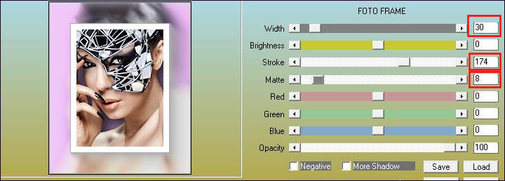 32- Calques, Nouveau Calque Raster 2 33- Calques, Fusionner tous 34- Si vous voulez utiliser votre propre image, les dimensions seront de 204 (L) x 247 (H) pixels environ ! 35- Effets, AAA Frames, Foto Frame