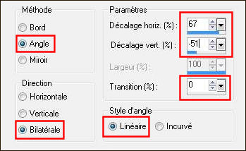 Sélections, Désélectionner tout 38- Refaites les étapes 34 à 37 sur le cadre de droite (copie de Raster 3 ) 39- Calques, Nouveau calque Raster 5 40- Outil, Pot de peinture 41- Calques, Dupliquer 42- Outil, Sélectionner (K )