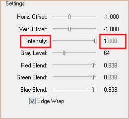 11- Effets, VM Extravaganza, Transmission mais réglages à 77 / 0 / 40 12- Effets, Effets de bords, Accentuer 13- Effets, Effets d'éclairage, Halo