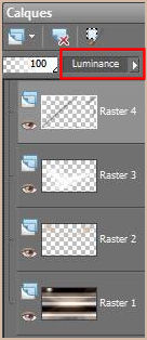 18- Calques, Dupliquer 19- Palette des calques sur Luminance (H) et Opacité à 40 % 20- Activez l'image Veronique-image01.pspimage, Edition Copier 21- Palette des calques sur Opacité à 77 % 22- Calques, Nouveau calque Raster 4