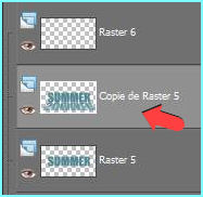 13- Ecrivez SUMMER en Majuscules, Appliquez 14- Objets, Aligner, Centrer sur le support 15- Calques, Dupliquer 16- Sélections, Sélectionner tout