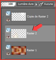19- Calques, Dupliquer 20- Palette des calques sur Lumière Dure 21- Se placer en haut de la pile (sur Copie de Raster 2 ) 22- Se replacer sur Raster 2