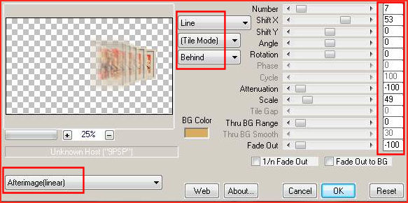 Avec une autre image, je vous conseille de redimensionner votre image en verrouillant les proportions et en appliquant la hauteur de 302 pixels (la largeur se modifiera toute seule !) 42- Edition Copier ! ---------------------------------------------------------------------------------------------- 43- Réactivez votre travail laissé en attente à l'étape 30 44- Effets, Effets d'image, Décalage,