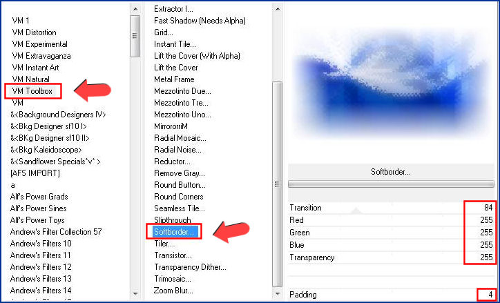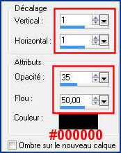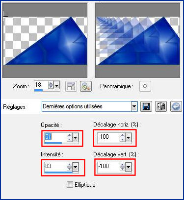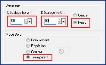 3- Fichier, Nouveau, Nouvelle image de 950 X 550 , Transparent, Raster 1 4- Outil, Pot de peinture 5- Calques, Dupliquer 6- Effets, Effets d'image, Décalage