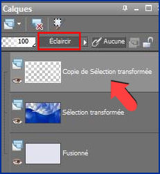 13- Sélections, Inverser 14- Revenir sur le calque Fusionné 15- Se replacer en haut de la pile sur le calque Sélection transformée