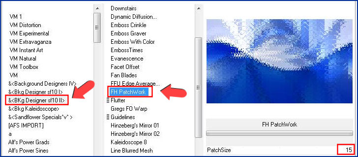 22- Sélections, Désélectionner tout 23- Effets, Bkg Designer sf10 II, FH PatchWork