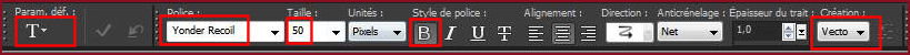 , sélectionnez la police Yonder Recoil,Taille 50 pixels, Avant-Plan fermé, Arrière-Plan #520406