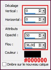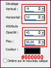 39- Effets, Effets 3D, Ombre portée, Ombre sur le calque coché !, couleur #4f0d34