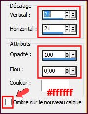 Effets, Effets 3D, Ombre portée, Ombre sur le calque non coché !, couleur # ffffff